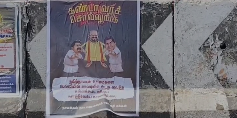 அந்த போஸ்டரில் கண்டா வரச் சொல்லுங்க தமிழ்நாட்டின் உரிமைகளை டெல்லியின் காலடியில் அடகு வைத்த கள்ளக்கூட்டணியை களத்திலேயே காணவில்லை எனக் குறிப்பிட்டு போஸ்டர் ஒட்டப்பட்டுள்ளனர். இதனால் அப்பகுதியில் பரபரப்பு ஏற்பட்டுள்ளது.