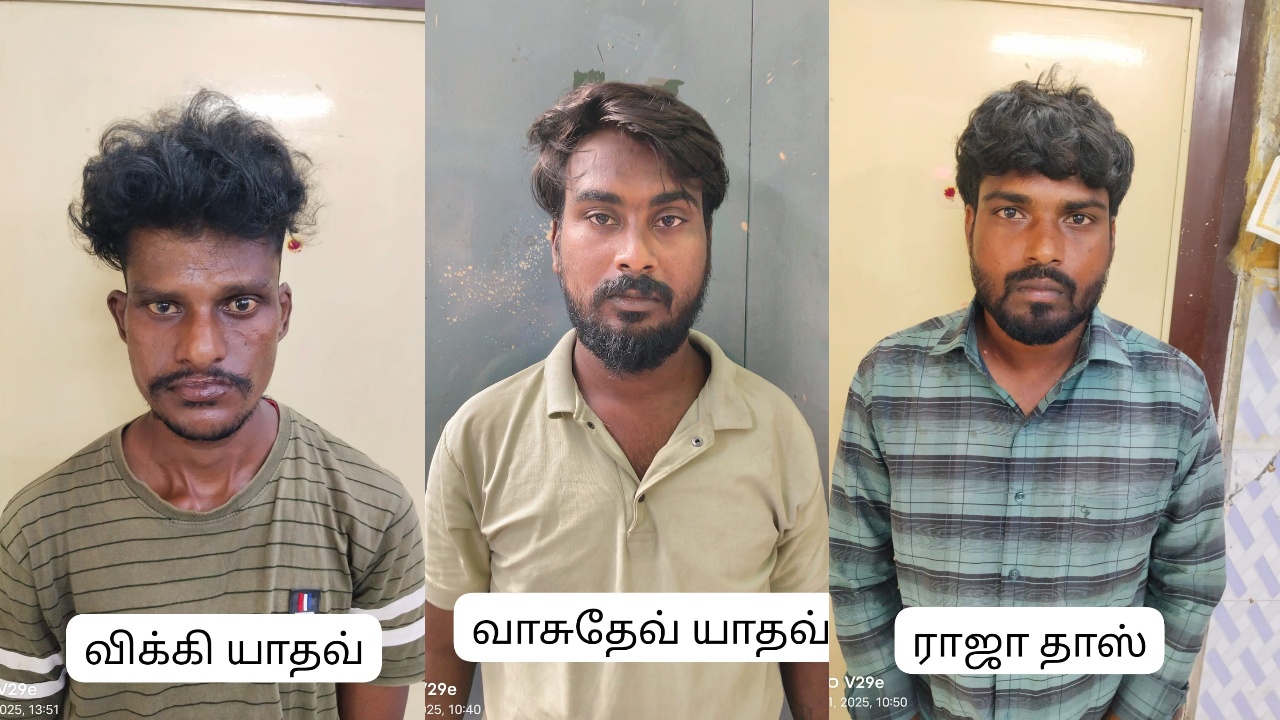 அப்போது ஆவடி ரயில் நிலையம் அருகே சந்தேகத்திற்கு இடம் அளிக்கும் விதமாகா சுற்றித்திரிந்த மூன்று பேரை பிடித்து விசாரணை மேற்கொண்டதில் அவர்கள் ஒடிசா மாநிலத்தைச் சேர்ந்த ராஜா தாஸ் (வயது 30) வாசுதேவ் யாதவ் (வயது 27) விக்கி யாதவ் (வயது 35) என்பதும் இவர்கள் செல்போன் திருட்டில் ஈடுபடுபவர்கள் என்பதும் தெரியவந்தது.