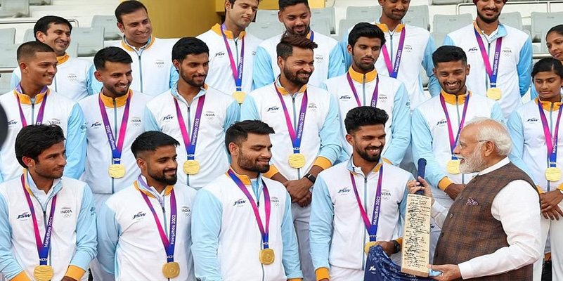 இந்நிகழ்ச்சியில் பல்வேறு விளையாட்டு வீரர்களுடன் கிரிக்கெட்டில் தங்கம் வென்ற இந்திய ஆடவர் மற்றும் மகளிர் அணியினரும் கலந்துகொண்டனர். அப்போது, ஆசிய விளையாட்டு போட்டியில் கலந்துகொண்ட இந்திய ஆடவர் கிரிக்கெட் அணியின் கேப்டன் ருத்துராஜ் கெய்க்வாட், அணி வீரர்கள் இணைந்து கையெழுத்திட்ட பேட்டும், ஜெர்சியையும் பிரதமர் மோடிக்கு பரிசாக வழங்கினார்.
