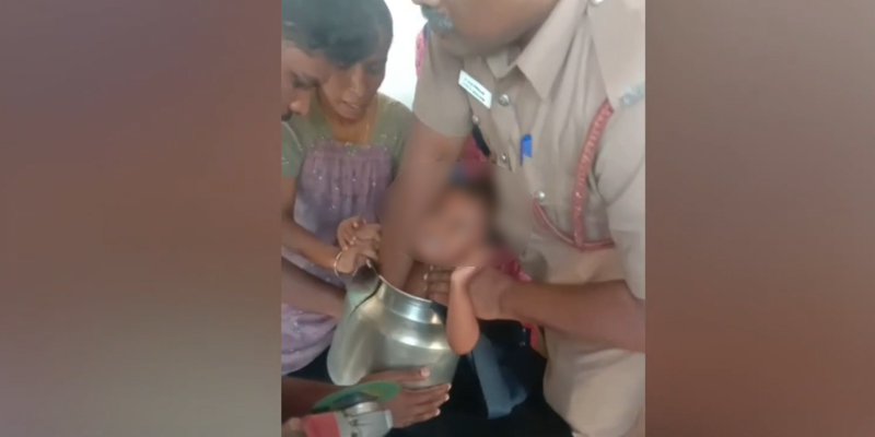 வீட்டில் விளையாடிக் கொண்டிருந்த குழந்தை பாத்திரத்தில் மாட்டிக் கொண்ட சம்பவம் குறித்த வீடியோ சமூக வலைத்தளங்களில் வைரலாகி அப்பகுதியில் பெரும் பரபரப்பை ஏற்படுத்தியது.