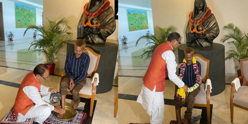 மத்தியப் பிரதேசத்தில் முதல்வரின் அதிகாரப்பூர்வ இல்லத்துக்கு வரவழைக்கப்பட்ட பழங்குடியின இளைஞர் பிரவேஷ் சுக்லாவின் கால்களை கழுவி, நடந்த சம்பவத்துக்கு மன்னிப்புக் கோரியிருக்கிறார் சிவராஜ் சிங் சௌஹான்.